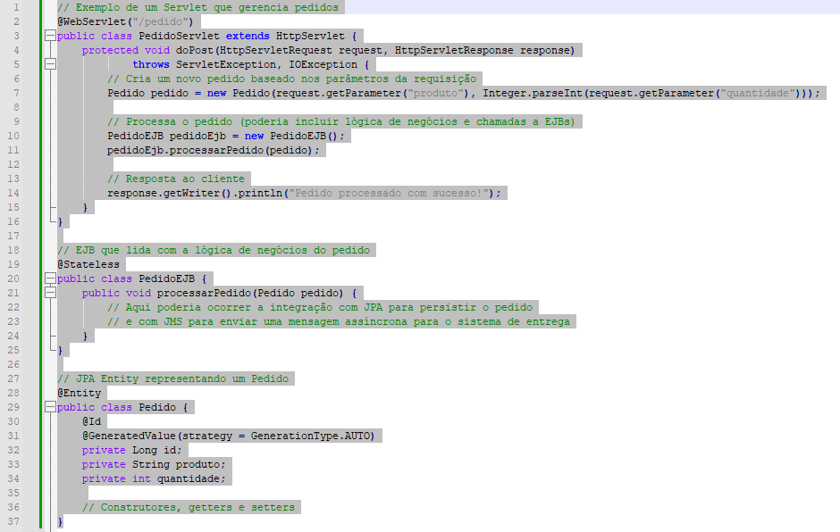 - Stateless Session Beans: Esses beans não mantêm um estado de conversação com o pedido. Quando um pedido invoca os métodos de um bean stateless, as variáveis de instância do bean podem conter um estado específico para aquele pedido, mas apenas durante a duração da invocação. Após a conclusão do método, o estado específico do pedido não deve ser retido.